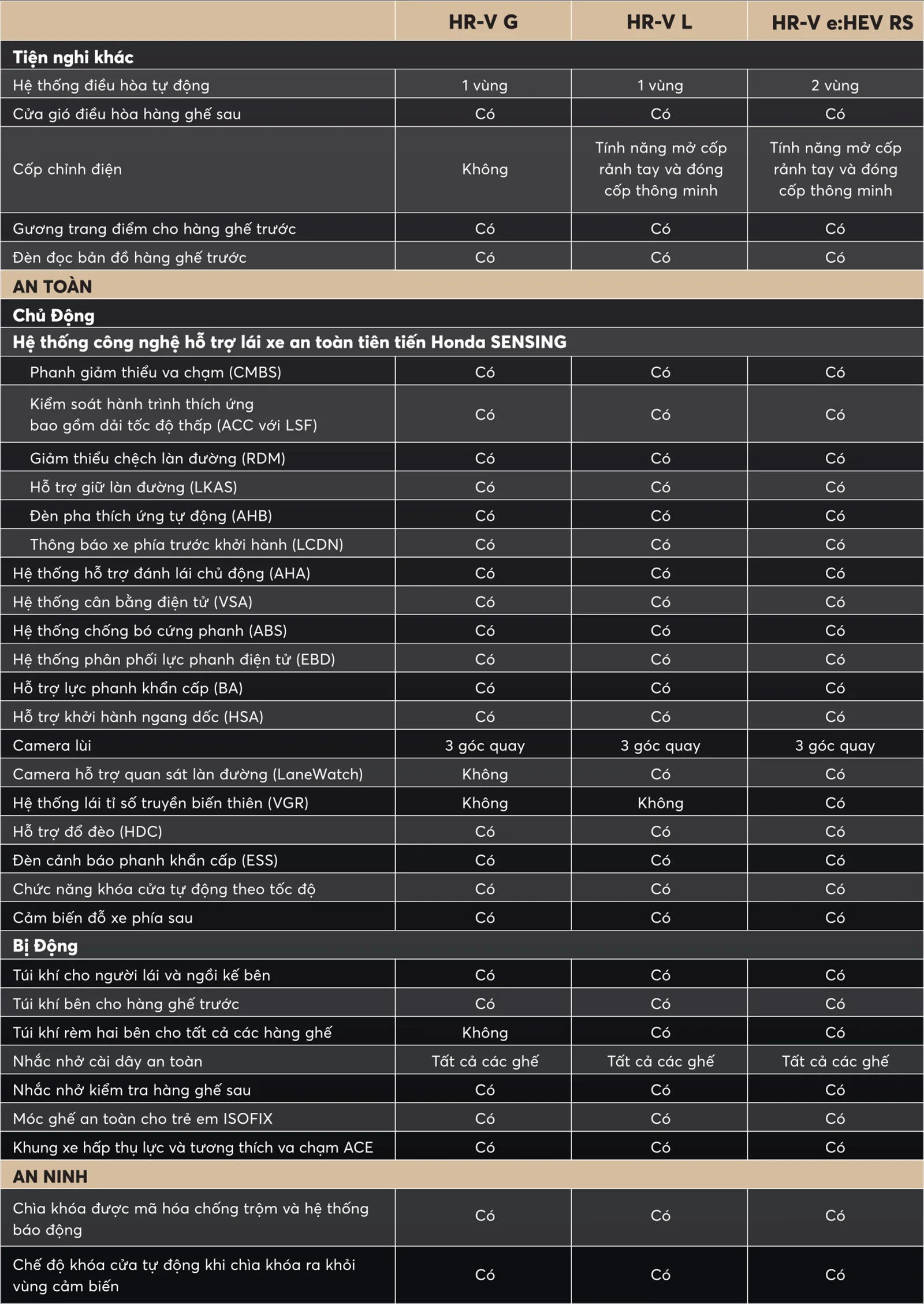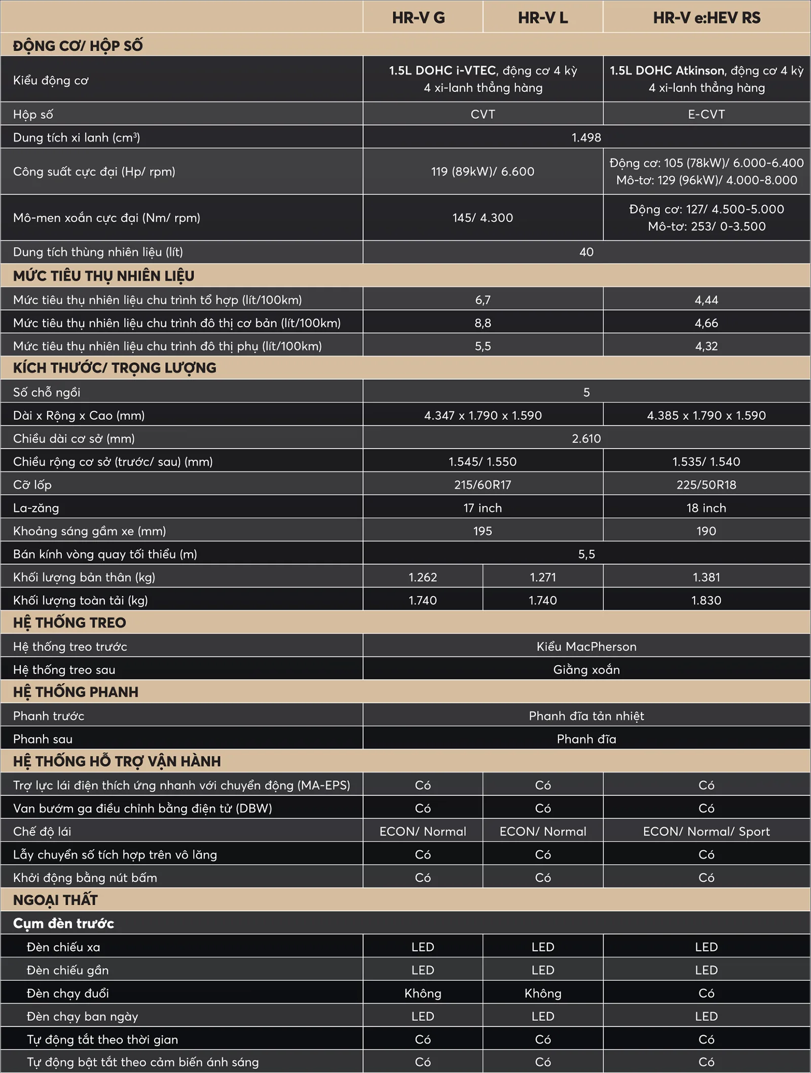 Honda HR-V mới được nhập khẩu nguyên chiếc từ Thái Lan và chính thức bán tại thị trường Việt Nam từ ngày 4/4/2025 qua hệ thống các Nhà phân phối Ôtô Honda trên toàn quốc với 2 loại động cơ: Hybrid và xăng trên các phiên bản, đi kèm tùy chọn màu sắc và mức giá bán lẻ đề xuất như sau: