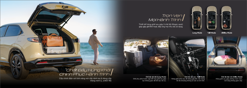 Honda HR-V mới tiếp tục duy trì thiết kế đặc biệt duy nhất trong phân khúc – Magic seat linh hoạt với 3 chế độ: chế độ tiện dụng, chế độ đồ vật cao, chế độ đồ vật dài, cho phép hàng ghế sau có thể gập phẳng hoặc lật lên tùy từng mục đích sử dụng.